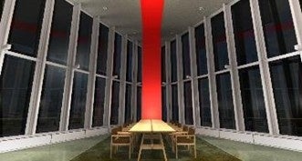 当社の環境経営の一環として、環境に配慮した空間としました。カーテンやカーペット素材にはエコ製品かつ日 本製を採用。壁面は全面、床面の約60%を水性塗装とし、将来的な廃棄物の発生を少量に抑え、環境負荷の軽減 につなげています。