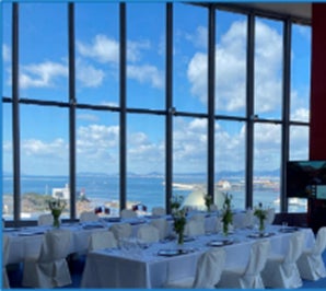 また、万博関係者やインバウンドの方々にも楽しんでいただけるよう、ガストロノミーツーリズムや、音楽イ ベントなど多様なパーティー開催に適した機器、簡易厨房設備を整備しました。大阪ベイエリアのビジネス、 エンターテインメントのサポート機能として、デイタイムはもちろんナイトタイムも華やかに彩ります。