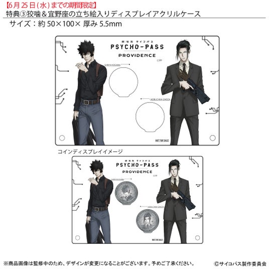 狡噛・宜野座のコイン〈1ペア〉をご購入で「狡噛&宜野座の場面写入りディスプレイアクリルケース」をプレゼントいたします。
