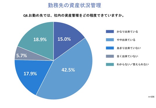 「Q8.お勤め先では、社内の資産管理をどの程度できていますか。」と質問したところ、「あまり出来ていない」が17.9%、「全く出来ていない」が5.7%という回答となりました。