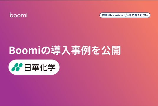 Boomi株式会社(所在地:東京都渋谷区/代表取締役社長 CEO:河野 英太郎/以下、Boomi)は、日華化学株式会社(本社:福井県福井市/代表取締役社長執行役員:江守 康昌/以下、日華化学)が基幹系システム刷新を契機に、Boomiで連携した業務基盤を構築し、マルチSaaSアーキテクチャーによる全社的なシステム改革を推進した導入事例を発表しました。同時に本日、これをBoomiの公式サイトに公開しました。日華化学の本事例では、基幹系システムの置き換えを部分最適の更新で終わらせず、 業務プロセス全体を見直したうえで、「Boomi Enterprise Platform」※を活用し、企業全体のアーキテクチャ変更へ発展させた背景と取り組みを紹介しています。