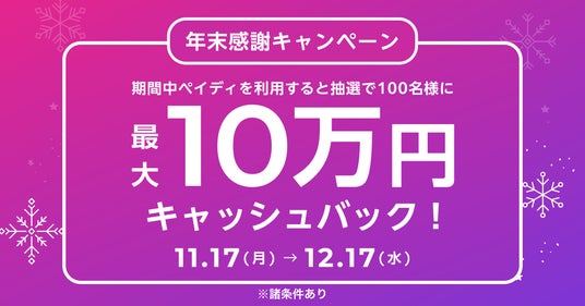 なお、ペイディでは、12月17日まで「年末感謝キャンペーン」を開催中です。ぜひこの機会にペイディでお得にお買い物を楽しんでみませんか。
