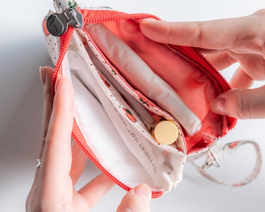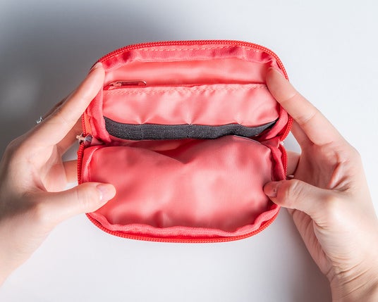 背面側の内装は水や汚れに強いビニール素材なので、ウェットティッシュや香水を安心して入れられます。