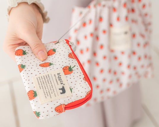 総柄プリントティッシュポーチ背面にティッシュポケットがついたポーチ。