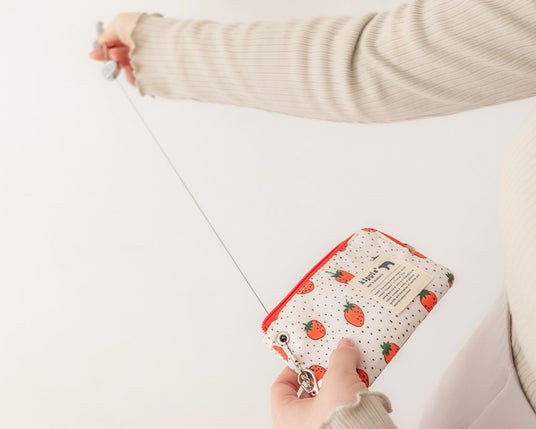 リール付きポーチ伸ばせるリール付きのポーチ。