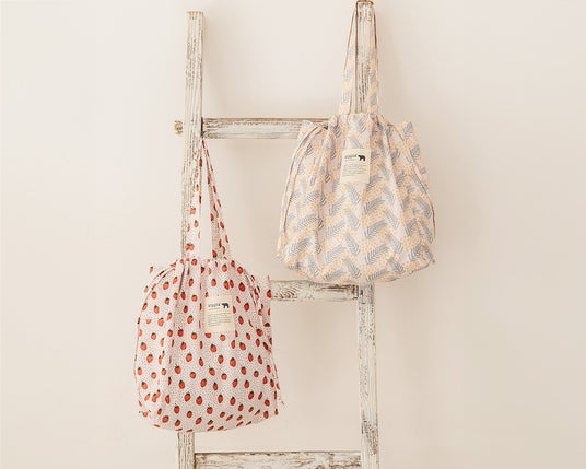 巾着トートバッグ巾着のように入り口を絞ることができるトートバッグ。