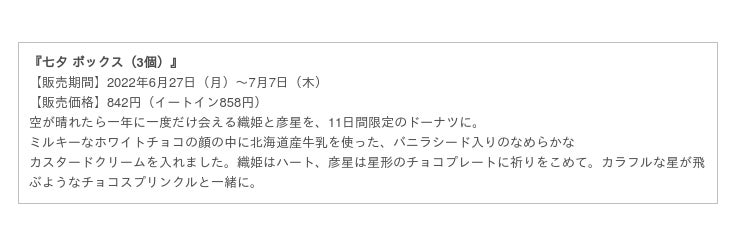 クリスピー・クリーム・ドーナツ・ジャパン株式会社(本社:東京都渋谷区、代表取締役社長:若月貴子、以下:KKDJ)は、7月7日(木)の七夕に向けて、『七夕 ボックス(3個)』を2022年6月27日(月)~7月7日(木)の期間限定で販売します。※催事及びKKD店舗以外の小売店を除く