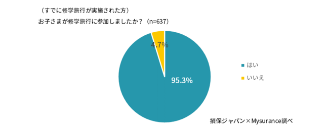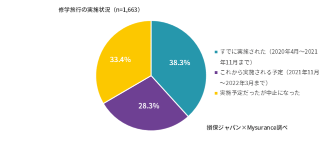 損害保険ジャパン株式会社(代表取締役社長:西澤 敬二、以下「損保ジャパン」)の子会社で「修学旅行キャンセル保険」を提供するMysurance株式会社(代表取締役社長 川上 史人、以下「Mysurance」)は、損保ジャパンと共同で「コロナ禍の修学旅行の参加実態調査」を行いましたので、その結果を公表します。