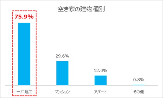 空き家の建物形態のうち、最も多いのは「一戸建て(75.9%)」で、前回同様最多の割合。居住地の県外に空き家を所有する人は、4人に1人の割合で存在しています。