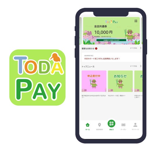 埼玉県戸田市プレミアム付電子商品券「TODA PAY」本事業は、市内商店会での販売促進及び経済活性化のため開始された事前申し込み制のプレミアム付電子商品券事業で、令和5年に続き第2弾の商品券事業となります。