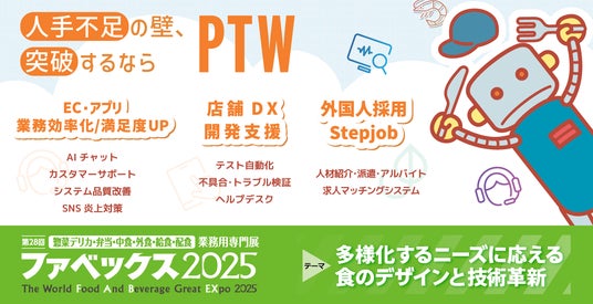 サービス・ライフサイクルにおける課題解決を支援するポールトゥウィン株式会社(本社:愛知県名古屋市、代表取締役CEO:橘 鉄平、代表取締役COO:志村 和昭、以下「ポールトゥウィン」)は、外食産業における人材不足やIT活用の課題に対し、BPOやアウトソーシングサービスの提供を通じた支援体制の強化を進めています。その一環として、2025年4月15日(火)から東京ビッグサイトで開催される「第28回ファベックス2025(FABEX東京2025)」に初出展し、飲食業界向けの各種ソリューションを紹介いたします。また、外食業界のデジタル化推進を掲げる「レストランテック協会」にも新たに加盟し、業界内での連携を強化してまいります。