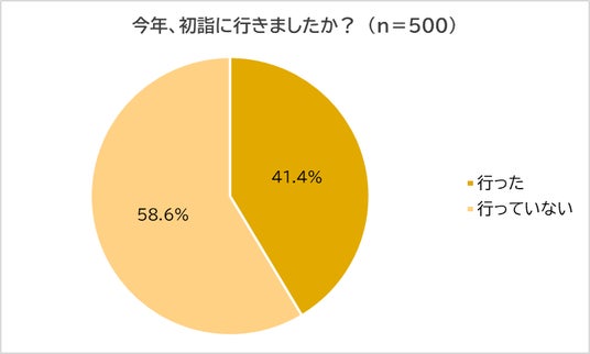初詣に行くタイミングは地域によって異なりますが、関東では松の内(1月7日)まで、一方関西では小正月(1月15日)までが目安と言われています。そこで、「今年、初詣に行ったか?」と尋ねたところ、「行った」と回答した人は4割強(41.4%)にとどまり、6割近く(58.6%)が「行っていない」と回答しました。初詣は日本の年始行事として広く定着しているものの、実際には過半数が参拝をしていないという結果になりました。