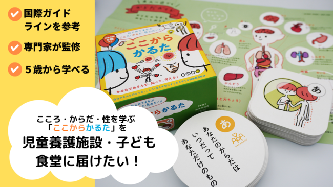 クラウドファンディングの資金は、家族との関係や経済的な難しさを抱える児童養護施設や、子ども食堂等で支援を受ける子どもたちに「ここからかるた」を届けるために使われます。