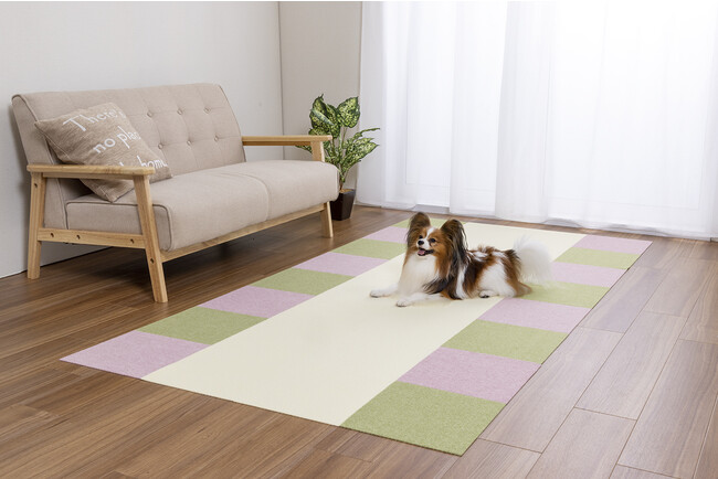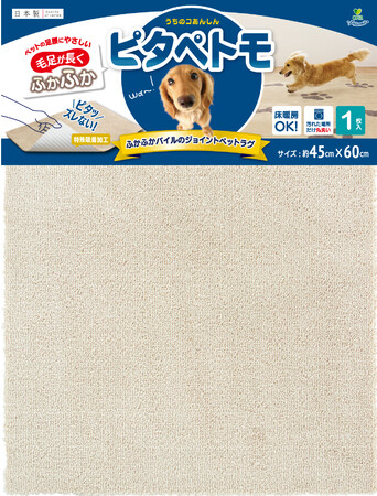 ツルッとすべって足腰に負担がかかってしまうフローリングを草原を思いっきり走り回っているようなふかふかラグへ変えてくれるペットラグ「ピタペトモ」。ペットと人が暮らす空間をもっと快適にしたいそんな想いから生まれたペットウェアです。