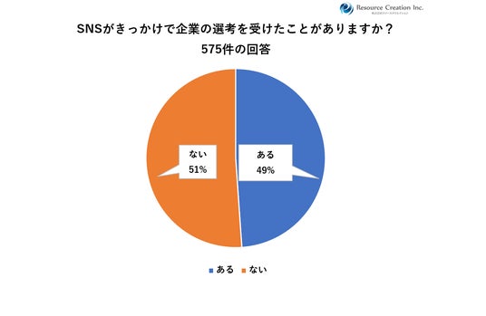 「SNSがきっかけで企業の選考を受けたことがありますか?」という質問に対して約半数が「ある」と回答しました。