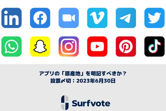 SNSとテクノロジーで社会課題の発見・解決をサポートするICTスタートアップのPolimill株式会社(ポリミル、本社:東京都港区、代表取締役:横田えり、以下Polimill社)は新イシュー「アプリの”原産地”を明記すべきか?」について、当社が運営するSurfvoteでユーザーの意見投票を開始しました。
