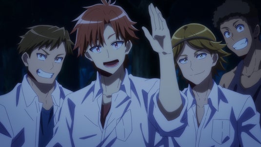 第4話では、女子クラスメイトたちとの共同生活を送る遥(CV:梅田修一朗)はある晩、脳筋莫迦A(CV:峯田大夢)たち運動部男子の脳筋莫迦グループと再会します。女子たちを狙う不良A(CV:山口智広)たちを見張っている彼らは「強奪」という恐ろしいチートスキルの持ち主がいることを警告します。翌日、委員長(CV:白石晴香)に呼び出された遥は「強奪」を持っているのは自分だという告白を受けて…。