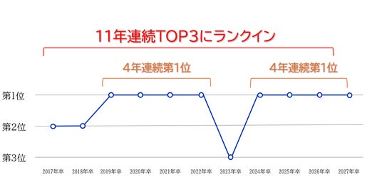 また、2018~2022年は4年連続第1位、今回は4年連続第1位の獲得となります。