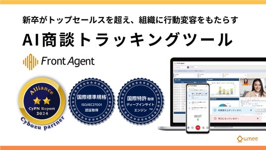 ユミーは、「新人がトップセールスを超える商談トラッキングツール”Front Agent(R)”」のブースを出展いたします。当日はコールセンター業務をご担当されている方に向けて「Front Agent(R)」を活用した会話をデータで可視化するデモンストレーション等を行います。