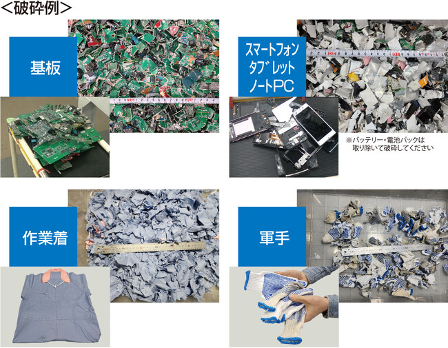 「小型万能二軸破砕機」は独自設計の「当て切りカッター」を採用し、刃先と反対軸側のシャフト(回転軸)の隙間を無くすことで薄くて柔らかい素材も破砕できる業務用破砕機です。スマートフォンやノートPC、電子基板などの硬いものから、作業着や軍手などの薄く柔らかい素材までせん断(破砕)できます。コンパクト設計のため、事業所内へのセキュリティルームなどへの設置が可能です。