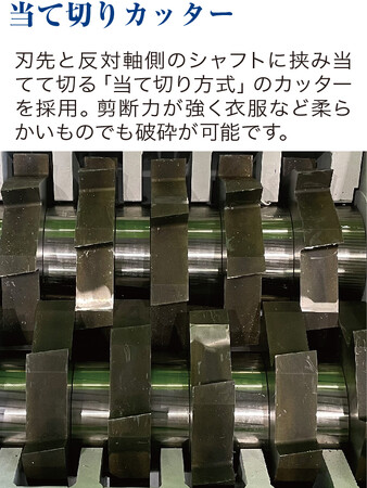 ・ 「当て切りカッター」の採用で薄くて柔らかい素材もせん断できる破砕機