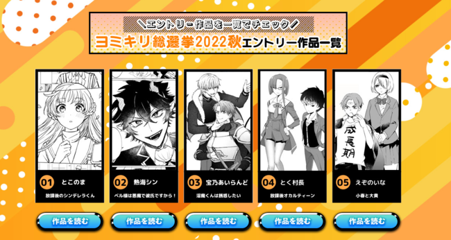 今回のヨミキリ総選挙でのエントリー作品は5作品!