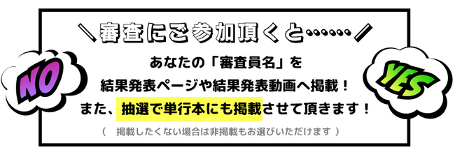 <審査特典 その2.>審査員名 (ハンドルネーム・ペンネーム・ネット用のお名前等OKです) の掲載!