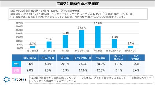 株式会社mitoriz(本社:東京都港区、代表取締役社長:木名瀬博)は、消費者購買行動データサービス「Point of Buy(R)(以下、POB)」の会員3,009人(20代~60代)に「焼肉に関するアンケート」を実施致しました。