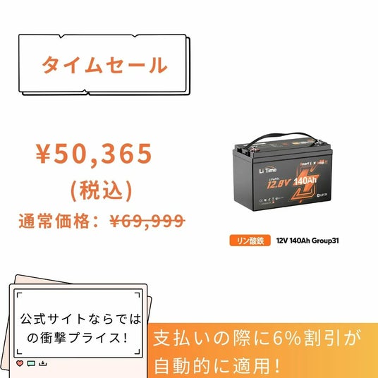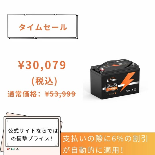 大容量・高性能のリン酸鉄リチウムイオンバッテリーを、今だけのお得な価格で手に入れるチャンスです。