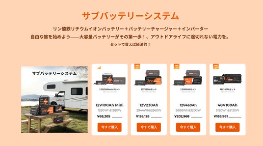 キャンピングカーサブバッテリーシステムを構成する製品もセール対象!