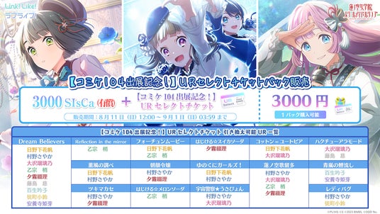 期間中、「リンクラ」のコミックマーケット104出展を記念したURセレクトチケットがセットになったパックを販売いたします。