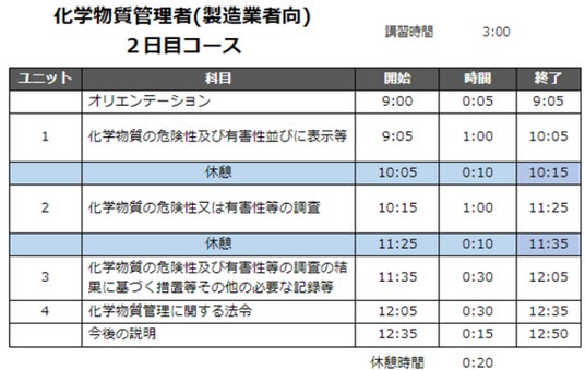 令和6年4月以降に化学物質管理者として選任される予定の方を対象に、必要な知識と実務能力を習得していただくため、学科9時間のカリキュラムによる講習です。