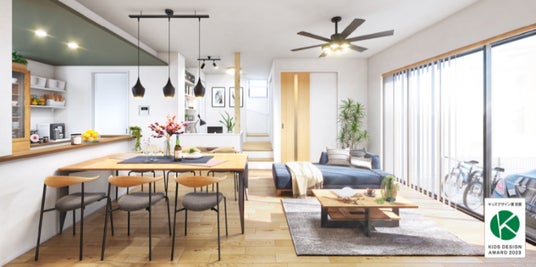 白色をメインに木の風合いをアクセントにした壁面や、掃き出し窓から爽やかな陽光が注がれるリビング空間には、親子のふれあいの場所になる「SKIPKIDS OPEN style」を設け、自然とコミュニケーションが生まれる工夫を施しました。