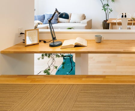 子どもたちと愉しくふれあえる場所をリビングの一角に設け、自然とコミュニケーションが生まれる工夫を施しました。子どもの遊び場はもちろん、家事ワークなどにも重宝します。