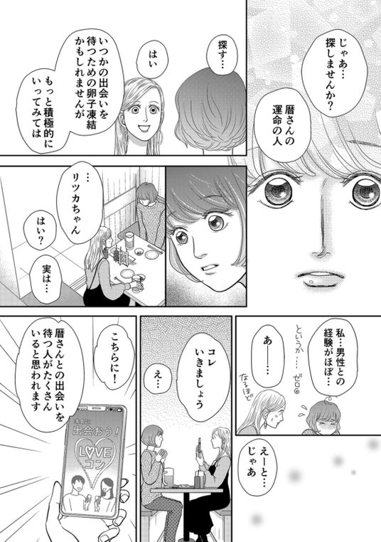 真面目一筋で生きてきた暦(こよみ)。生理の不調から、婦人科医のいとこの病院を受診すると「卵子凍結」という意外な提案をされる。一大決心し卵子凍結治療を始めるが、ホルモン作用のせいか異性に発情するという変わった感覚が現れはじめて…!?明るく前向きな新生・暦は「マッチングアプリ」や「女性用風俗」…など、これまでの暦には考えられないような経験を通じ、さまざまな男性と出会うことになるが…!?
