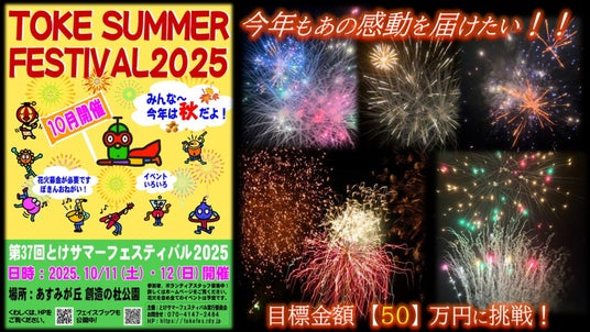 千葉市緑区発 | 土気あすみが丘のお祭りプロジェクト地域の皆さまが作り上げるお祭りが今年も10/11~10/12に開催。全国的に花火大会が減少する中、とけの空に花火を打ち上げるため、皆さまのご支援をお願いいたします!