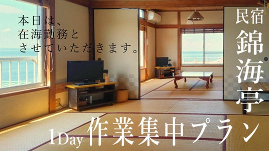 富津市新舞子海岸の【民宿 錦海亭】が、日帰り作業プランを新たに提供します。海を眺めて仕事、読書、映画鑑賞はいかがですか?