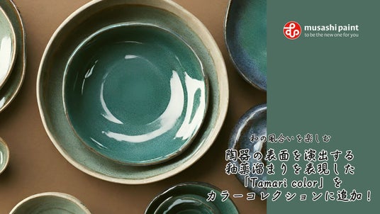 武蔵塗料は、人気の高い和テイストに着目し、陶器に見られる釉薬溜まりを再現し日本の伝統的な美しさと独創性を追求した塗料「Tamari color」を武蔵塗料のカラーコレクションに加えました。