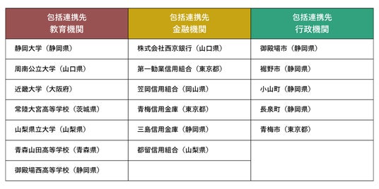 徹底した差別化戦略として、教育機関や地域金融機関、行政機関と連携することで、高度なシナジーを創出し、多面的な地方創生の実現を目指しています。現在までに、7教育機関、6金融機関、5行政機関と包括連携協定を締結し、他の教育機関においてもインターンシップや金融リテラシー教育等様々な取組みを展開しています。