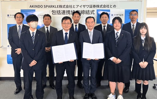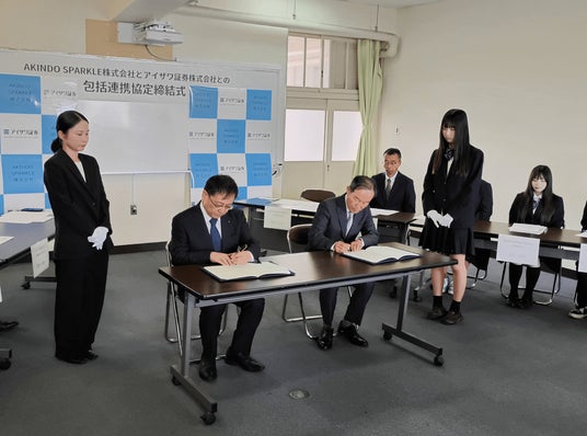 アイザワ証券株式会社(本社所在地:東京都港区、代表取締役社長:藍澤 卓弥、以下「当社」)は、AKINDO SPARKLE株式会社(所在地:大阪府八尾市、代表取締役:澤井 宏幸、以下「AKINDO SPARKLE」)と地域社会の発展や人材の育成等を図ることで合意し、包括連携協定を締結いたしました。