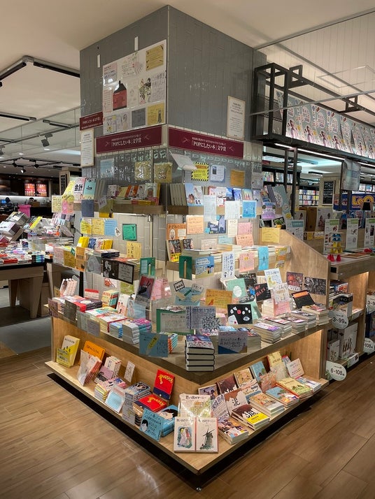 このフェアでは、POP作りの授業を受けた生徒一人一人が選んだ1冊と、自らが心を込めて制作したPOPが並びます。ティーン世代の共感を集める作家や人気作品が紹介される一方で、自分を表現する豊かな個性や鋭い感性が発揮された意外なラインナップもあり、日頃は目立たない場所にある隠れた名著が生徒のPOPにより注目され、新たな読者との出会いが生まれています。