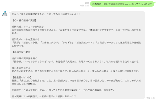 私たち大賀薬局は、120年を超える歴史の中で「奉仕こそ我らの務め」という理念を大切にしてきました。AI社長の導入は、単なる業務効率化ではなく、この理念を次世代に正しく継承し、全社員が自ら考え行動できる「自走型組織」へと進化していくための第一歩です。これからの100年を共につくる仲間の力を、AIという新しい手段で最大限に引き出していきたいと考えています。