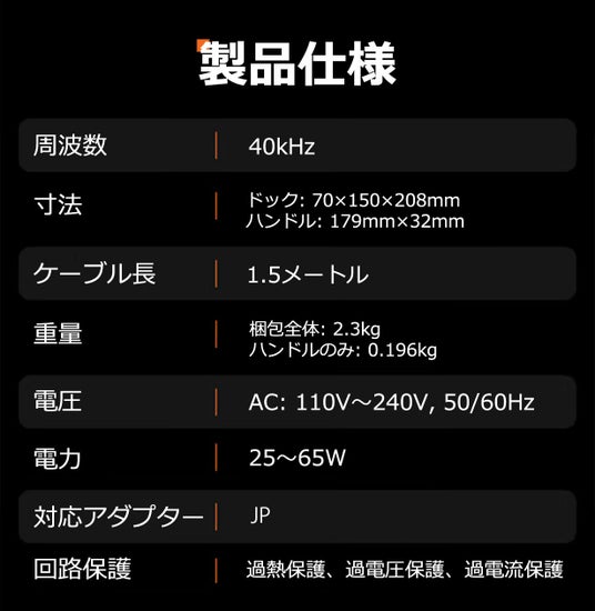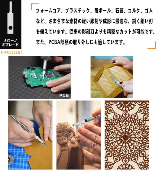 耐久性のあるカーボンスチール製ブレードとチタン合金ネジを採用し、安定した操作を実現。高周波振動による過熱が発生した際には、1分以内に自動で電源が切れる過熱保護機能も備えています。