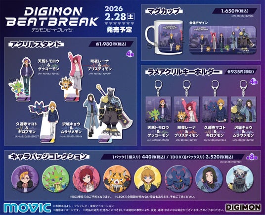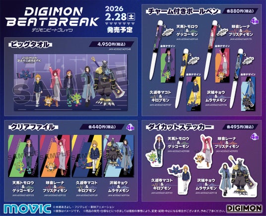 東映アニメーション株式会社(本社:東京都中野区、代表取締役社長:高木勝裕)は、アニメイトにて『DIGIMON BEATBREAK』『デジモンアドベンチャー』『デジモンストーリー タイムストレンジャー』の新商品を発売いたします。また、同日より【『DIGIMON BEATBREAK』アニメ放送中!大応援フェア】を開催いたします。