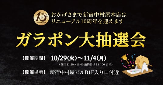 株式会社中村屋(本社:東京都新宿区、代表取締役社長 島田裕之 東証スタンダード:2204、以下 中村屋)は本店リニューアル10周年を記念し、2024年10月29日(火)~2024年11月4日(月)まで「感謝祭」を開催します。