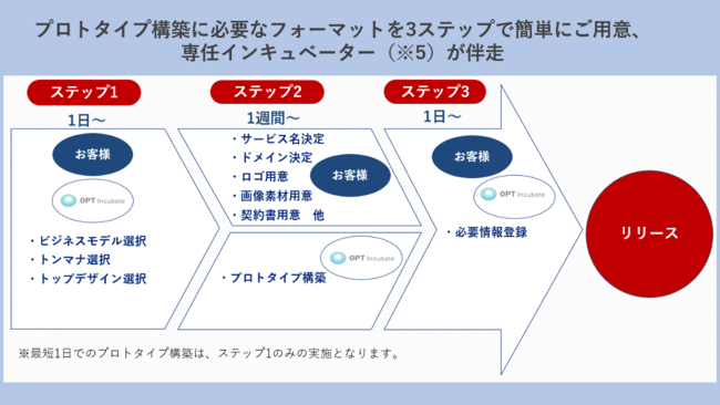 従来、新たなWebサービスをリリースする際は、コンサルタントやSIerへ相談することがありますが、想定以上の時間やコストがかかってしまい、なかなかリリースまで到達しない、開発を断念せざるを得ないケースが多く見受けられるといった課題が散見されます。このような課題に対し、オプトインキュベートは、マッチング・シェアリング、およびサブスクリプション型ビジネスにおける知見・技術を活かして、2021年4月より提