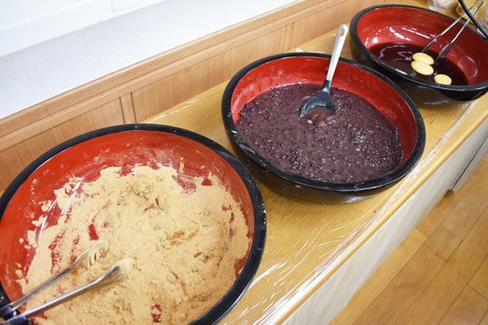 もちつきに必要な臼、杵、もち米など、食材や備品に至るまで、全てをご用意してお持ちします。神社でご祈祷した特別な杵を使用しますので、縁起がよく開運を招く意味を込めて「開運出張もちつき隊」と名付けました。プロの指導のもと、ご自身でもちつきに挑戦することも可能!杵を振るう力強い動作は、ストレス発散にもつながります。出来立てのおもちを、様々なトッピングで味わう、至福のひとときを体験してください。