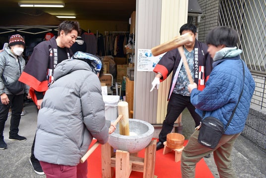 イベントでは、開運出張もちつき隊自慢の特別な杵でつく縁起の良いもちつき体験を実施し、参加者の方々につきたてのおもちを味わっていただきました。また、温かい豚汁の提供や、子どもたちに大人気の射的ブースも出店し、会場は終始賑やかな雰囲気に包まれました。