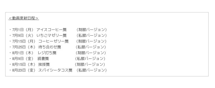 次週以降は、齋藤さんが私服姿でカフェ・ベローチェで休憩するシーンを収録した動画も公開。