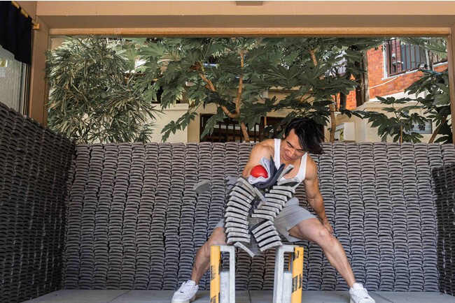 「使う用途ないけど面白い」とSNSやメディアで話題のマッチョのフリー素材・ストックフォトサイト「マッスルプラス」。浅草で瓦割り体験ができる「瓦割りカワラナ」にて、真剣に(?)瓦割りに挑戦するマッチョのフリー素材を撮影しました。